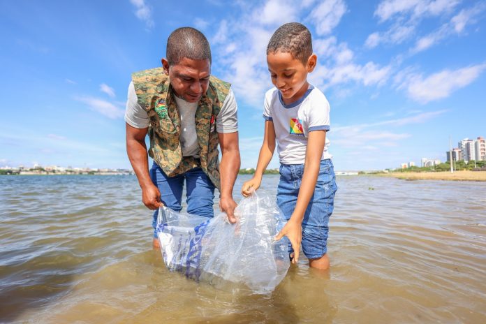 Em comemoração ao Dia Mundial da Água, celebrado nesse sábado (22), a Prefeitura de Petrolina e a Companhia de Desenvolvimento dos Vales do São Francisco e do Parnaíba (CODEVASF) realizaram uma ação de peixamento nas águas do Rio São Francisco. A ação foi coordenada pela Agência Municipal do Meio Ambiente (AMMA) e reuniu diversos estudantes e profissionais. O objetivo é sensibilizar a população para a importância da preservação dos recursos hídricos e dos ecossistemas aquáticos. Engenheiros de Pesca conduziram o processo de liberação dos 100 mil peixes.