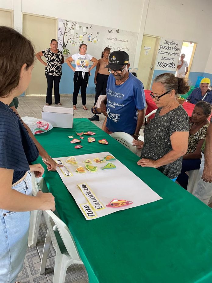 Com jogos e dinâmicas interativas, os idosos do Centro de Idosos Mimi Cruz participaram, nesta semana, de uma ação educativa voltada para a conscientização sobre alimentação saudável. A iniciativa contou com atividades lúdicas, como a escolha de alimentos saudáveis e um bingo de frutas, proporcionando aprendizado e diversão. A ação foi conduzida por estagiárias da faculdade Uninassau de Petrolina, que orientaram os participantes sobre a importância de uma alimentação equilibrada.