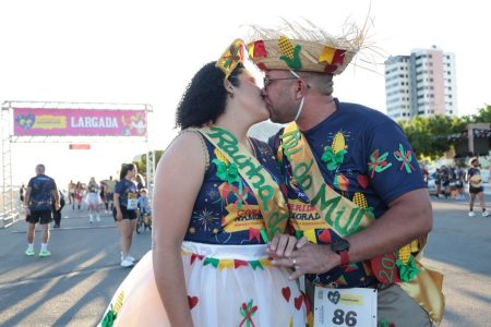 O casal Márcio Aparecido e Kaline Lima chegou cedo e destacou o espírito colaborativo da prova. “É uma corrida diferente, e por ser em casal, um ajuda o outro”, disse Kaline. “Essa época junina é nossa melhor época, então aliar esse período à corrida e à saúde é maravilhoso. Estamos aqui para compartilhar o amor”, completou Márcio.